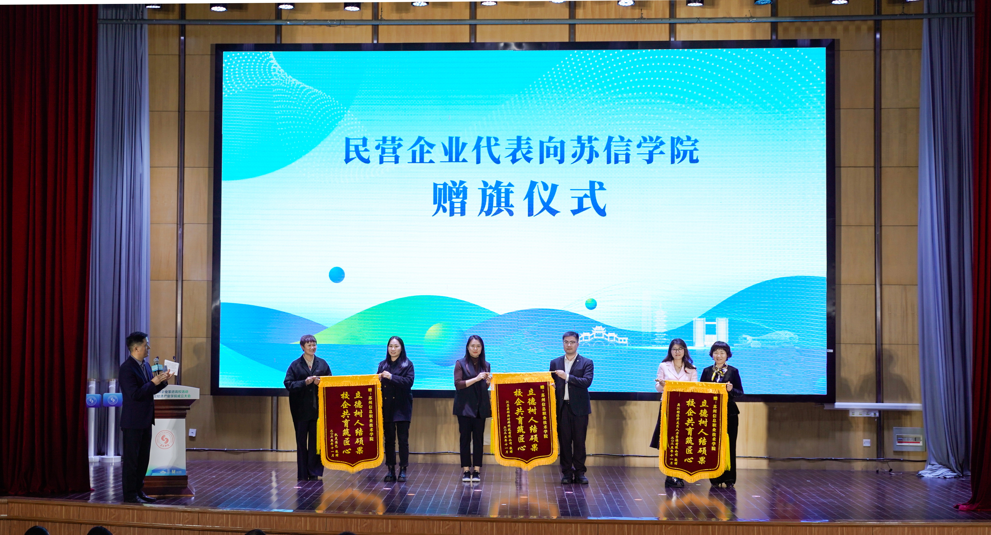 活动现场,凯灵箱包、江苏康辉新材料、吴江经济技术开发区人才集团分别向我院赠送锦旗,对我院在协同联合育人、实习基地建设等方面的支持予以致谢。