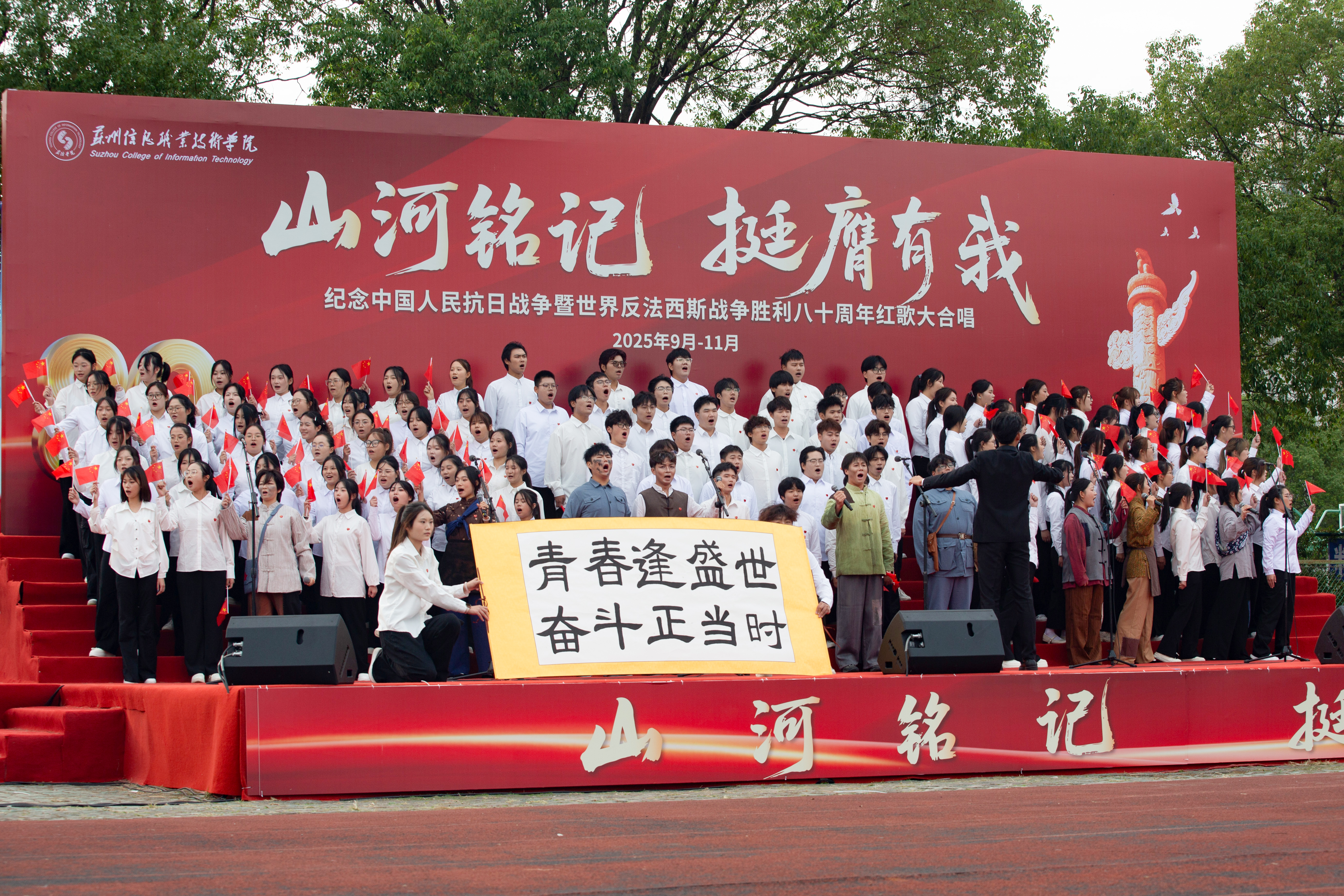秋风送怀,山河铭记英雄志;盛世和声,岁月峥嵘启新程。为纪念中国人民抗日战争暨世界反法西斯战争胜利八十周年,弘扬伟大抗战精神,充分展示我院师生永远听党话、跟党走的坚定决心。11月12日,我院举行2025年红歌大合唱汇演,学院全体教职工,2025级、2024级学生参加活动。