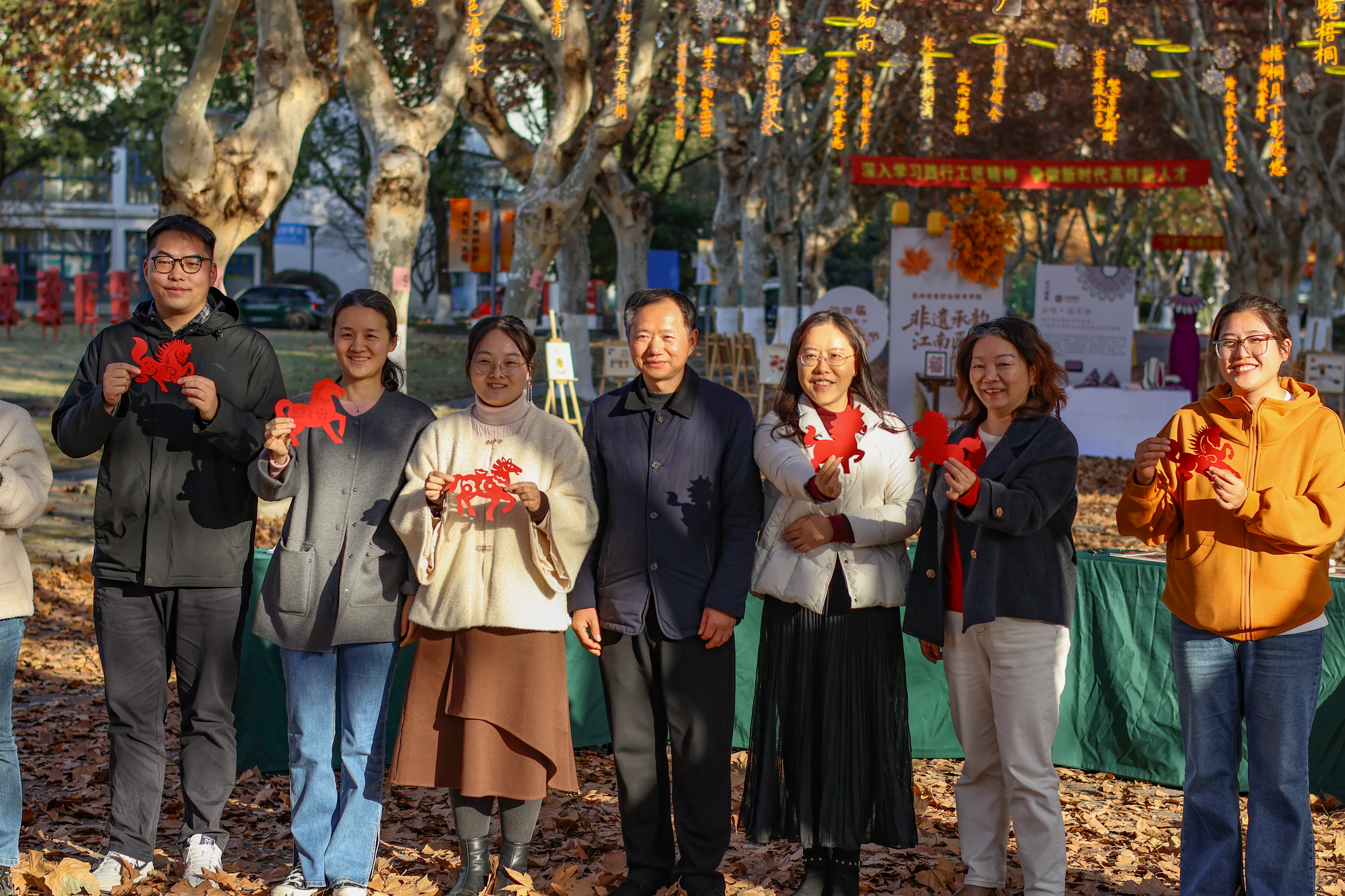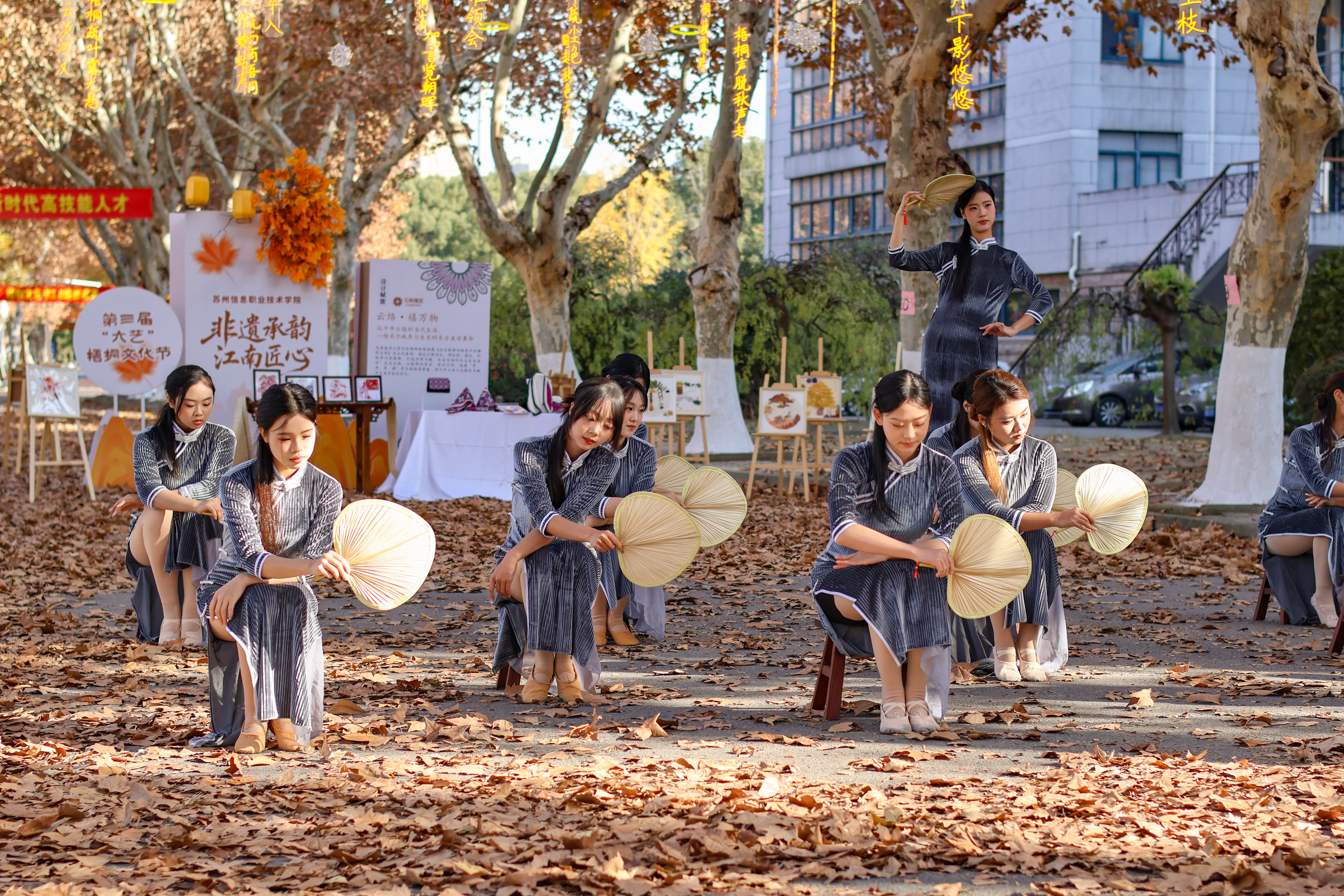 秋意深浓,冬寒微醺,苏信校园仿若一幅斑斓画卷,12月9日,我院举行第三届“六艺”梧桐文化节,以“非遗承韵 江南匠心”为主题,在梧桐大道开启一场与非遗古韵、江南匠心的诗意邂逅。苏州龙泉禧里丝绸科技有限公司创始人黄秋停、同里剪纸非遗传承人计建明受邀出席,学院领导,中层干部,学工、 团委条线教职工,在校师生代表参加。
