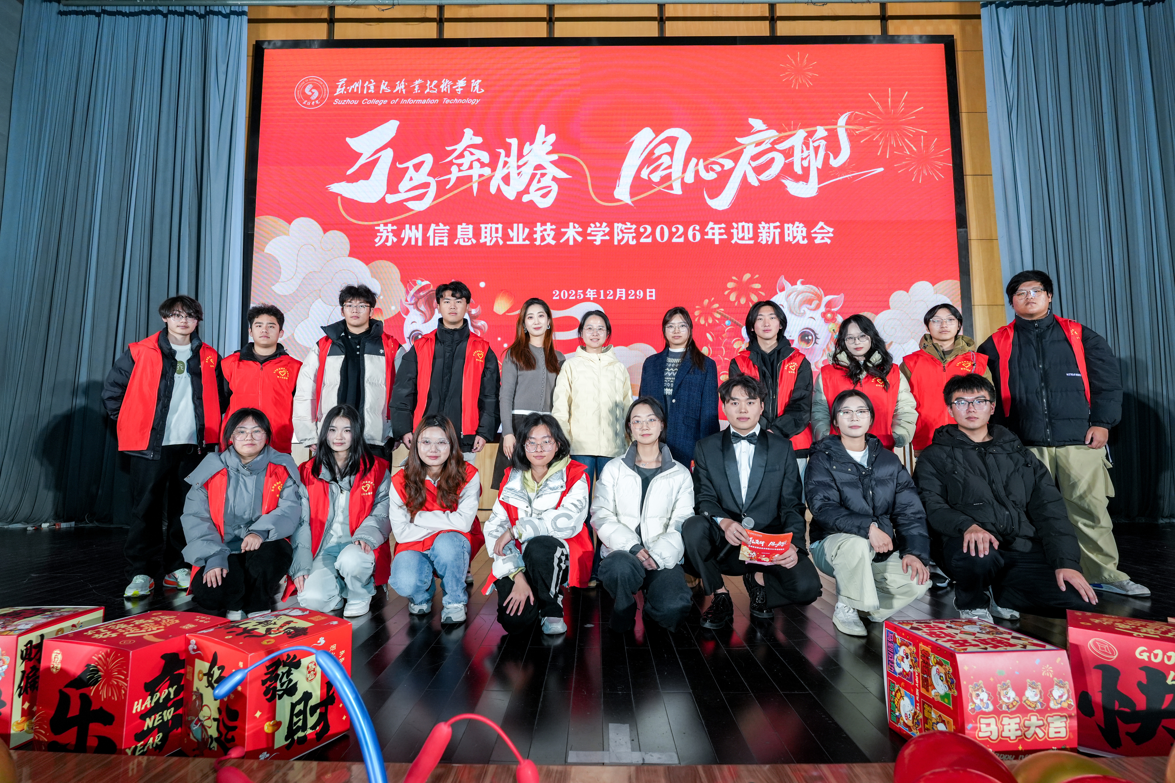 冬韵渐浓,岁华新至。12月29日,苏信校园星光璀璨,暖意融融,学院领导与师生代表齐聚一堂,共同赴约“万马奔腾、同心启航”2026年迎新晚会。15个文艺节目、2轮惊喜抽奖,以及互动游戏精彩呈现,这场交织着青春、热血与梦想的晚会,为旧岁画上圆满句号,为新年奏响奋进序曲。