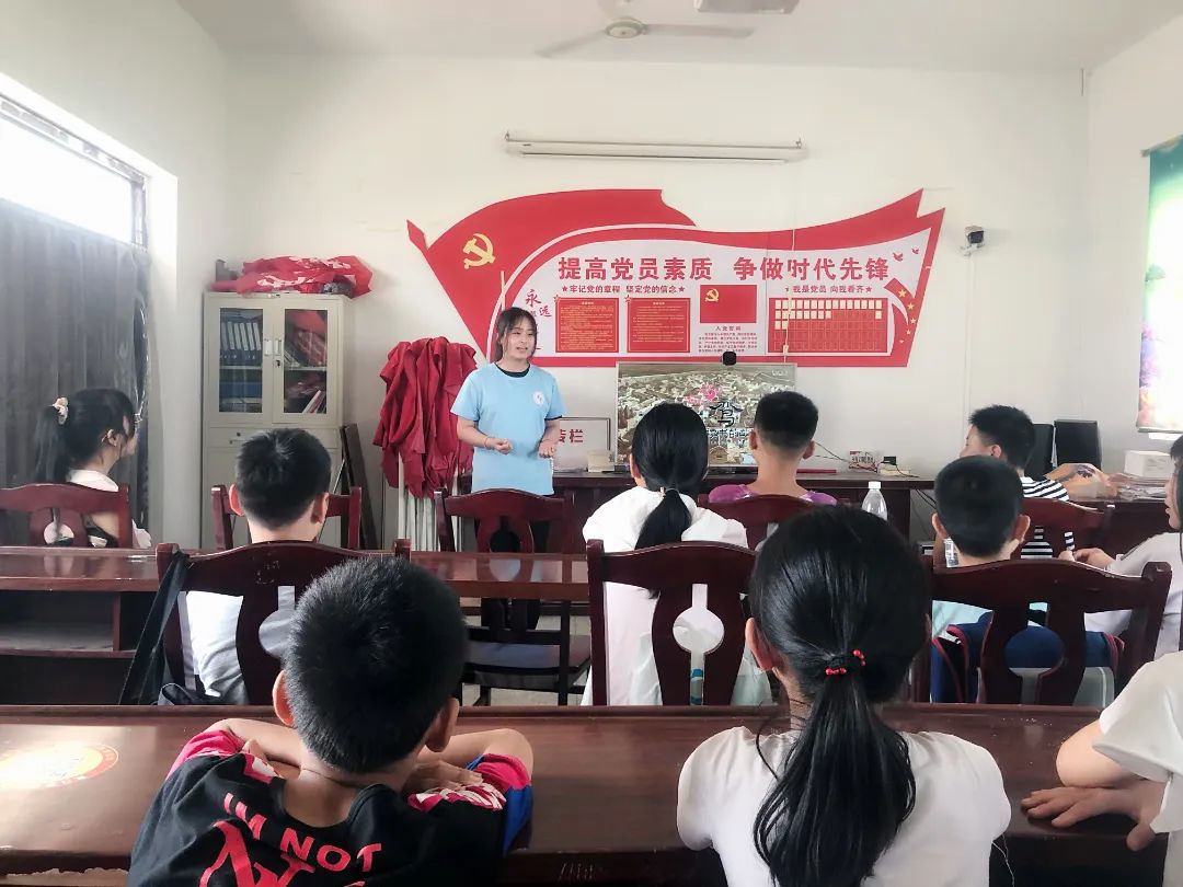 在涟水县红窑镇龙兴村党群服务中心,青年大学生向留守儿童开展党史教育宣讲,用动画鉴赏、游戏互动等方式,追溯伟人的成长路程,陪孩子们一起观看红色动画《大鸾——周恩来童年读书的故事》。