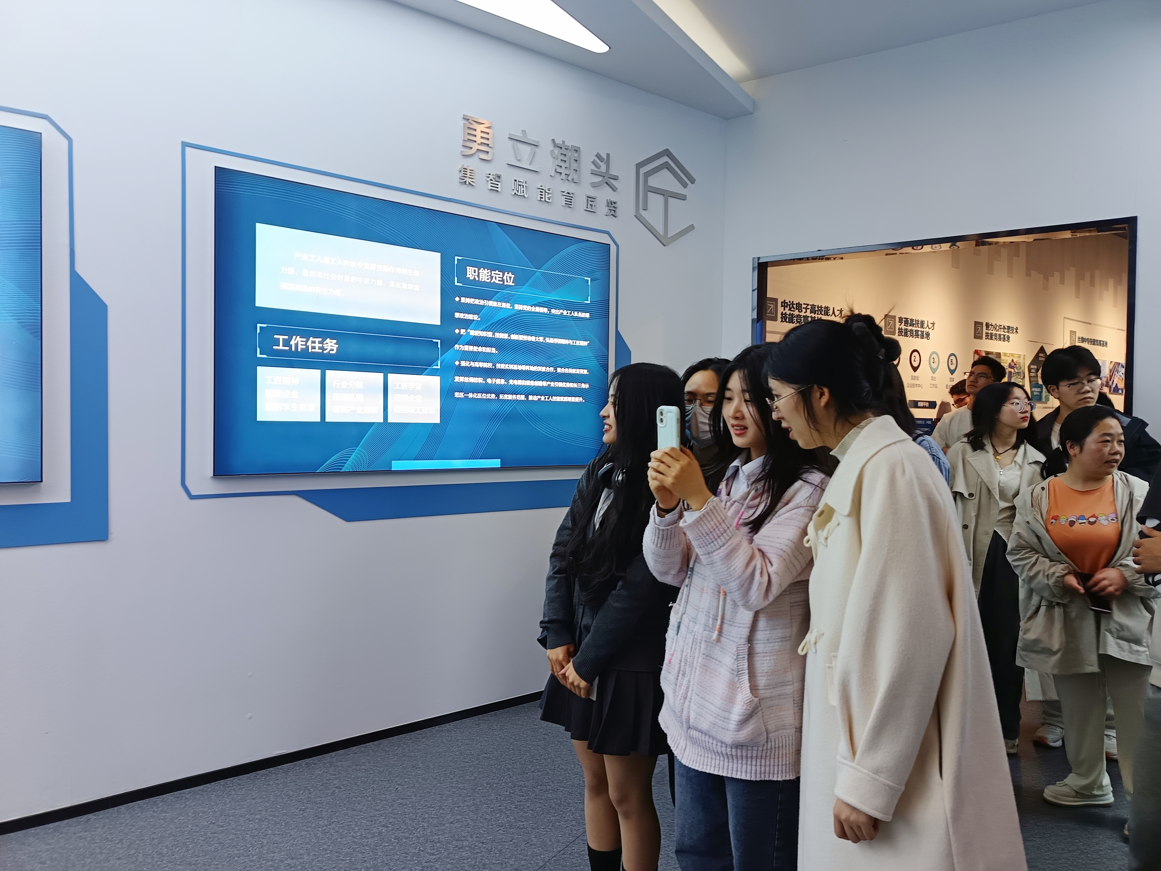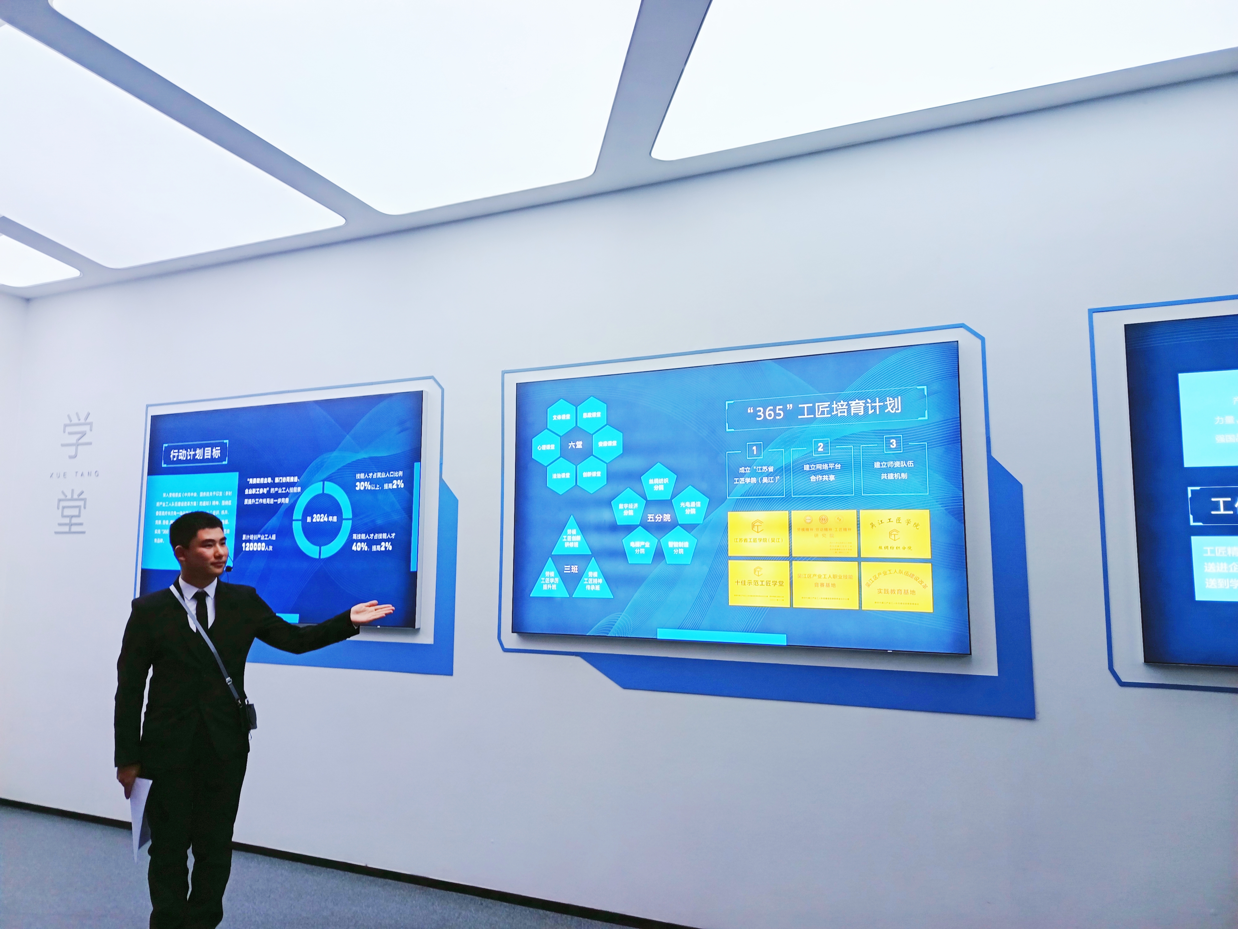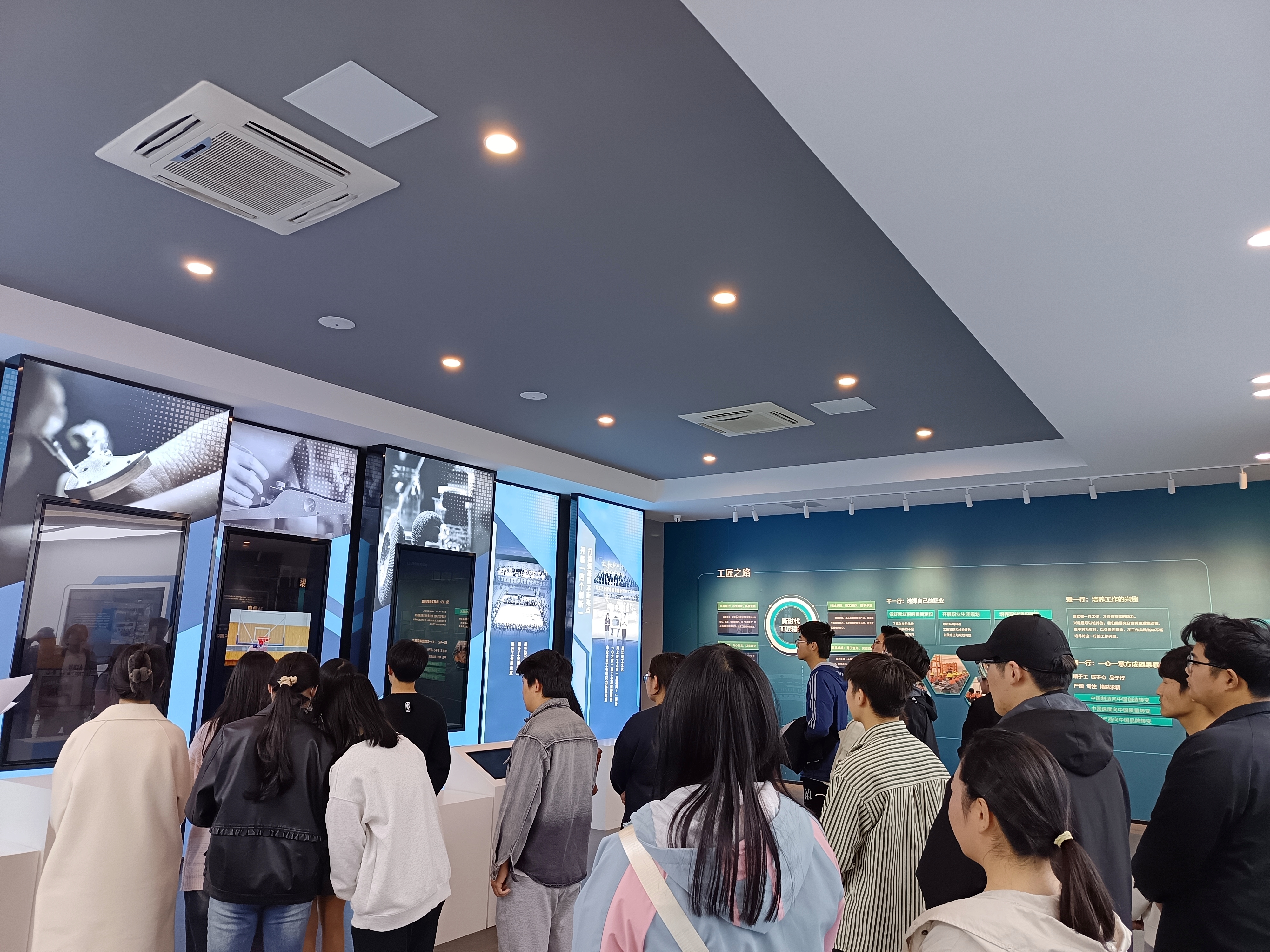 工匠馆以“正心诚意、精益求精”为核心,由前厅、匠心铸梦、薪火相传等多个板块组成,通过多媒体设备、互动场景等方式多角度多维度展现艺匠百态,彰显工匠精神。
