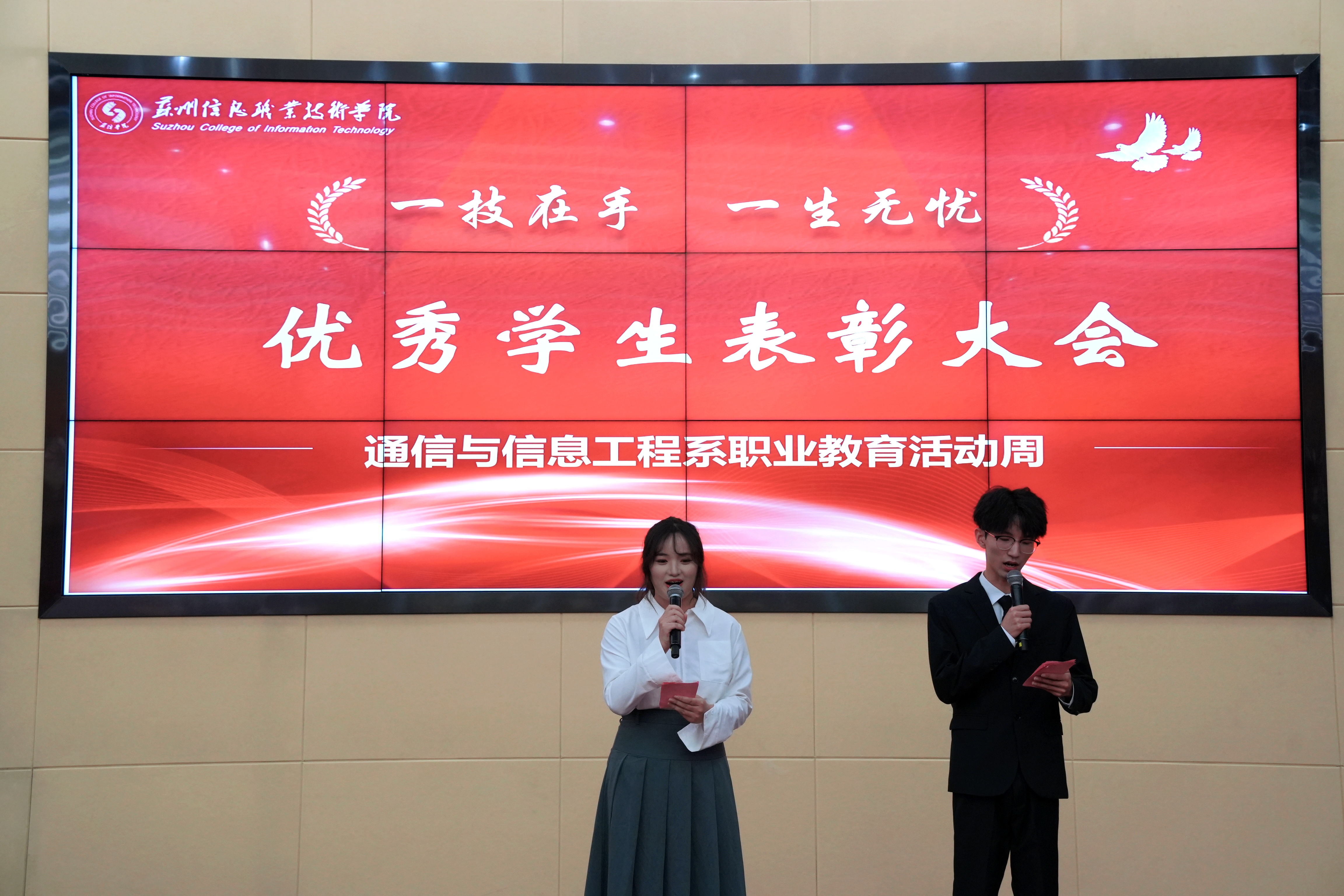 作为职业教育活动周的重要活动之一,苏州信息职业技术学院通信与信息工程系于5月29日下午举行“一技在手,一生无忧”优秀学生表彰大会。表彰会设立了五星个人奖,即文体之星、奉献之星、励志之星、技能之星、双创之星,以及先进班集体奖,旨在打造尽展其才、人人出彩的广阔“舞台”。