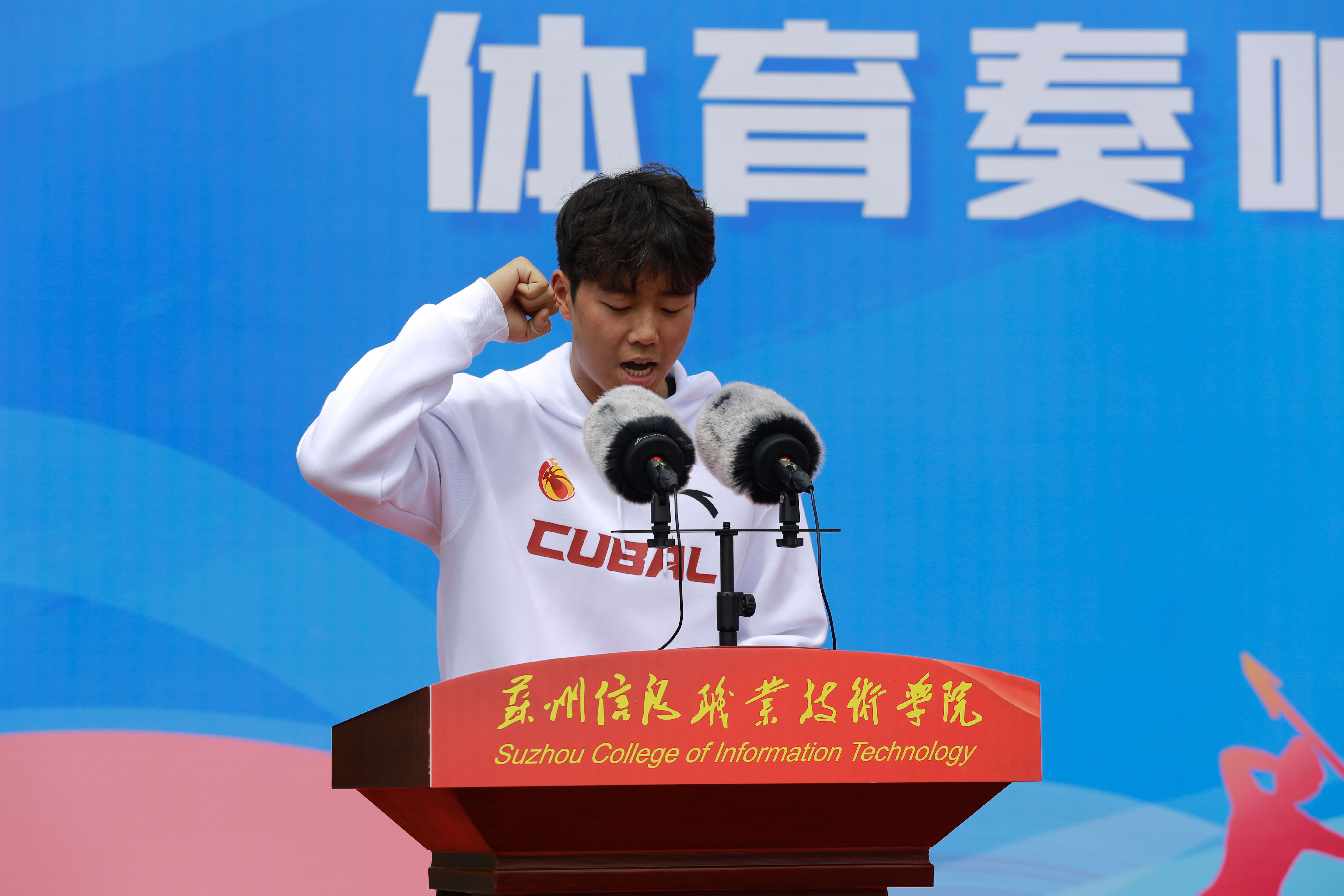 党委书记臧其林宣布苏州信息职业技术学院第十九届田径运动会正式开幕。
