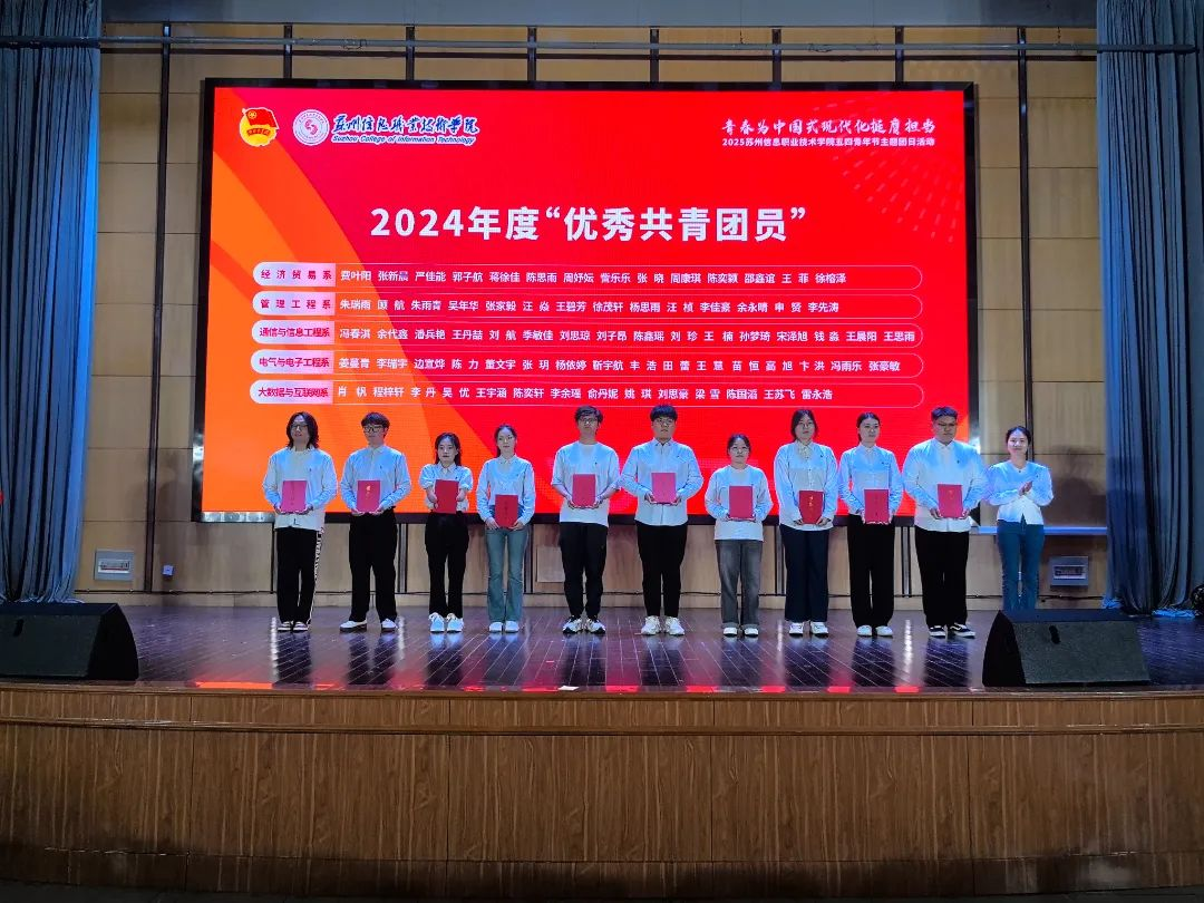 在五四表彰环节,一批先进集体与个人脱颖而出。大数据与互联网团总支荣获“2024年度五四红旗团总支”称号,管理工程系张艳婷老师获评“优秀共青团干部(教师)”,多个团支部、学生干部及团员分获“五四红旗团支部”“优秀共青团干部(学生)”“优秀共青团员”等荣誉。