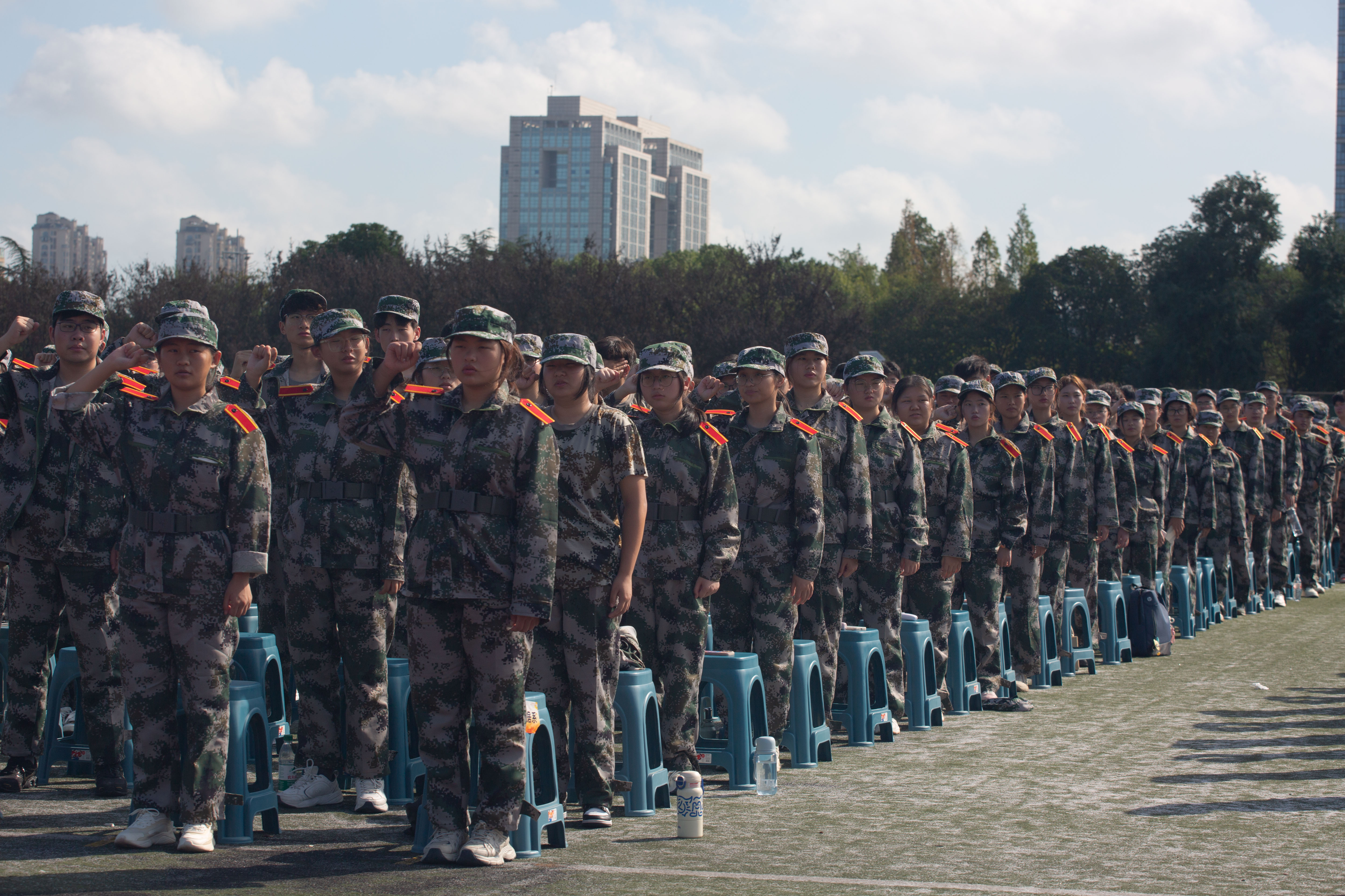 军训教官胡益铭代表全体教官宣誓,他表示,将严肃军纪、关爱学生、以身作则、积极协作、保障安全,确保军训任务圆满完成。